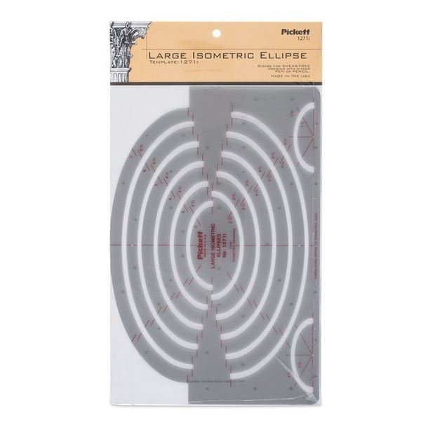 Pickett® Ellipse Templates Built-in risers and smooth apertures to reduce smudged lines for engineering, drafting and design Translucent, smoke-gray flexible plastic for durable, long-lasting use Template House Planning Fixtures Create various sizes and projections of ellipses Size: .06" x 6.63" x 11.94"