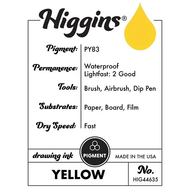 Higgins Ink Pigmented Ink Waterproof Fadeproof 1oz Yellow