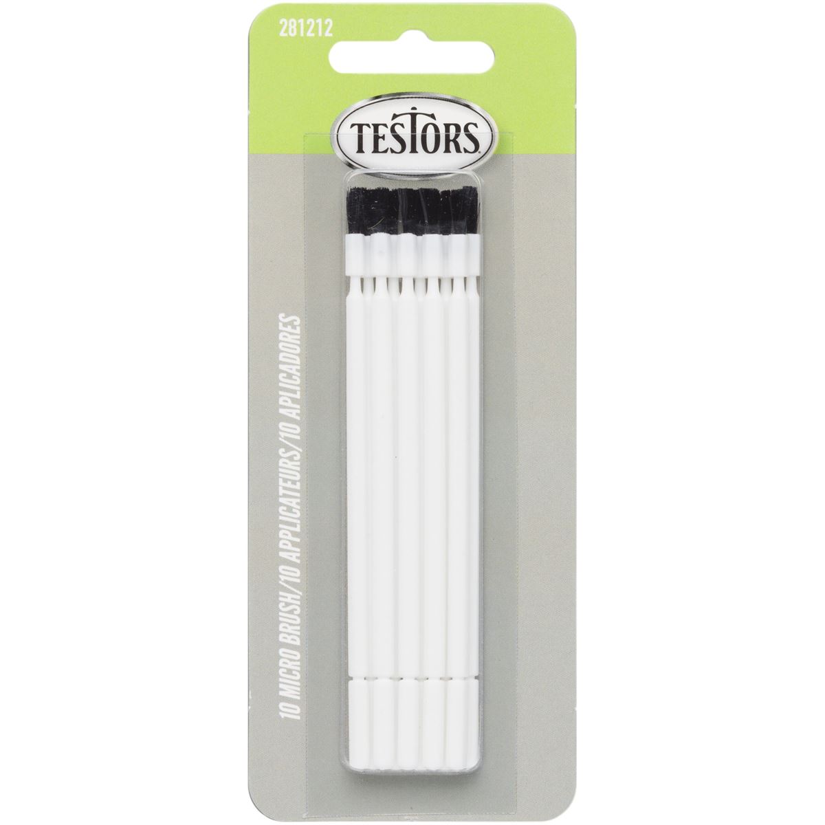 These micro brushes by Testors are great for touch ups, fine detail and hard to reach areas. These can be used with paint, cement, thinner and more. This includes 10 micro brushes. Made in the USA