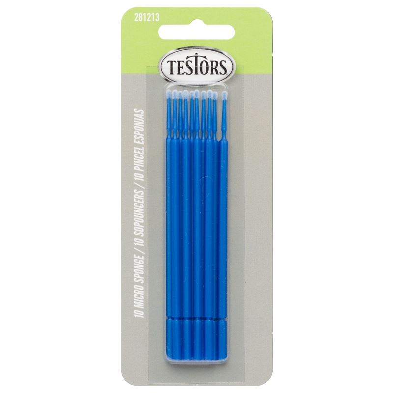 These micro sponge brushes by Testors are great for touch ups, fine detail and hard to reach areas. These can be used with paint, cement, thinner and more. This includes 10 sponge brushes. Made in the USA.